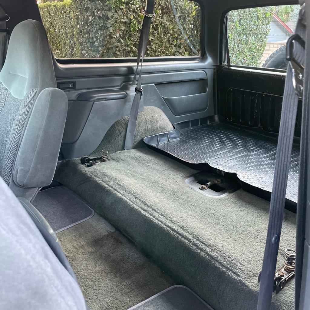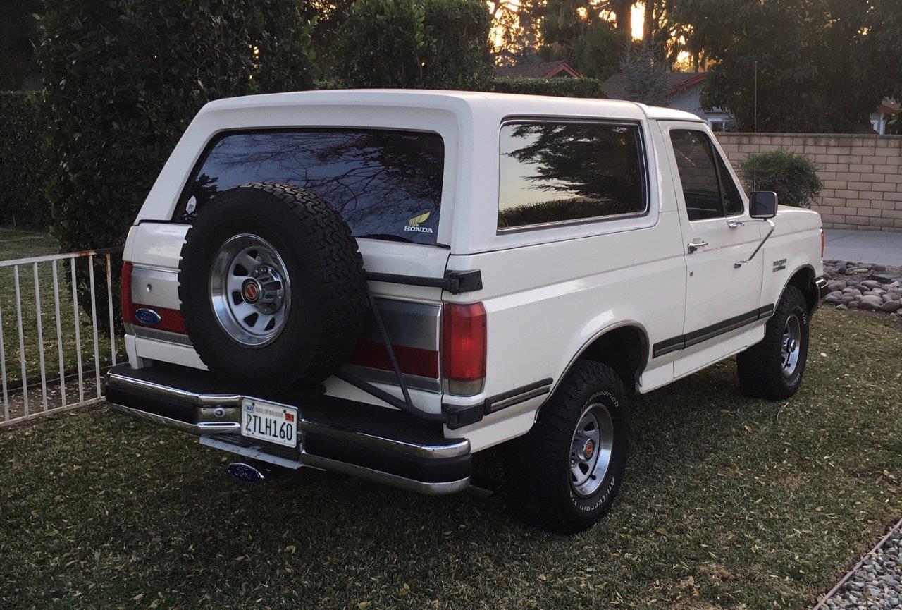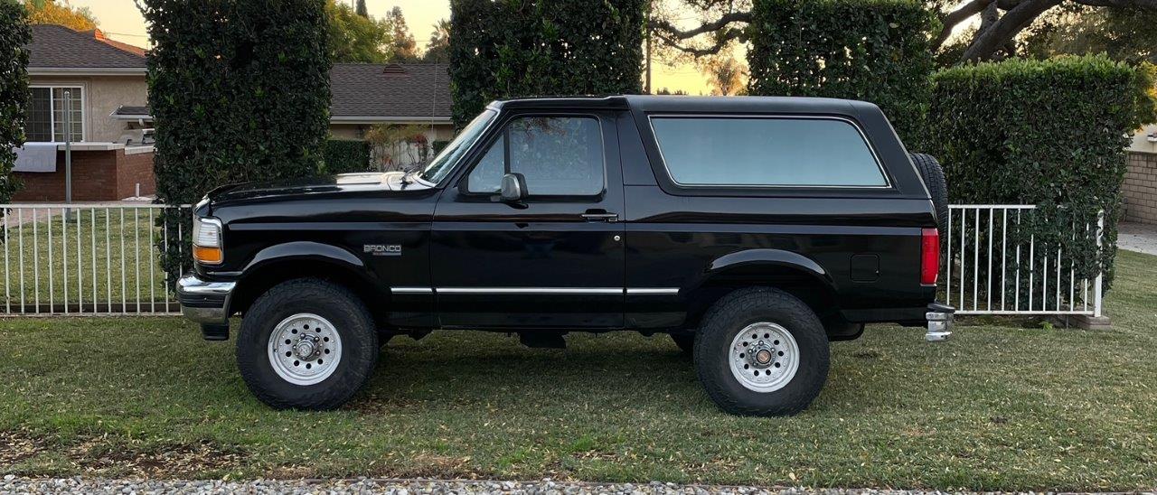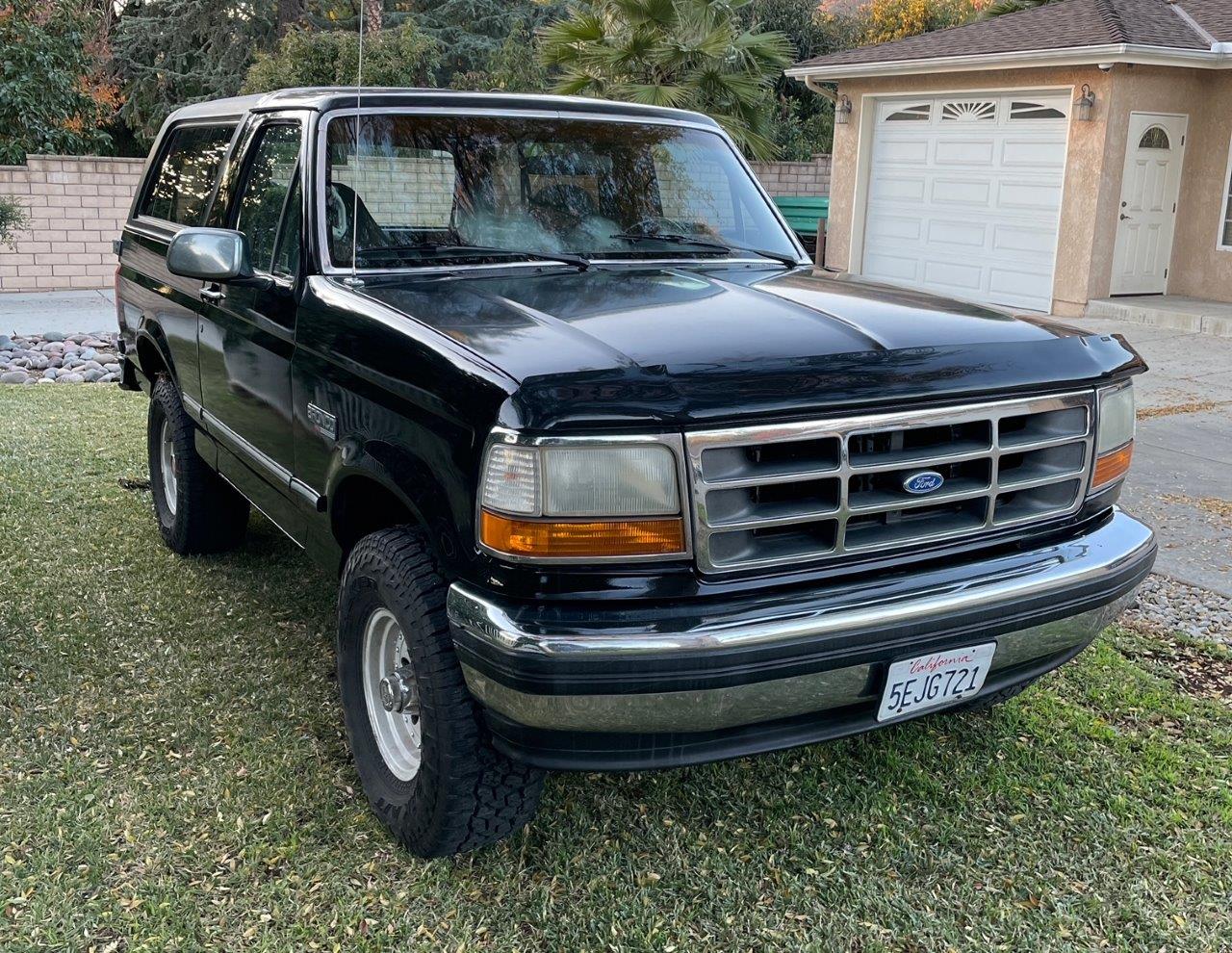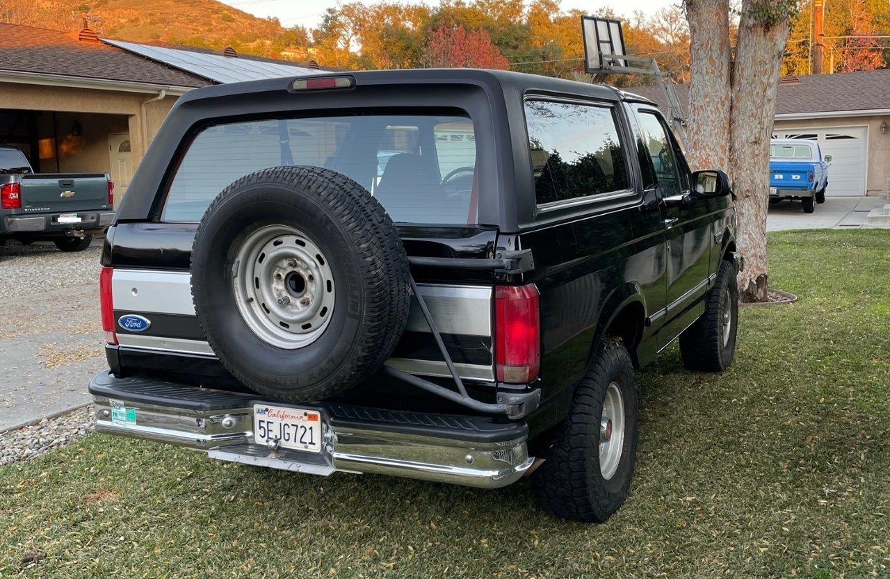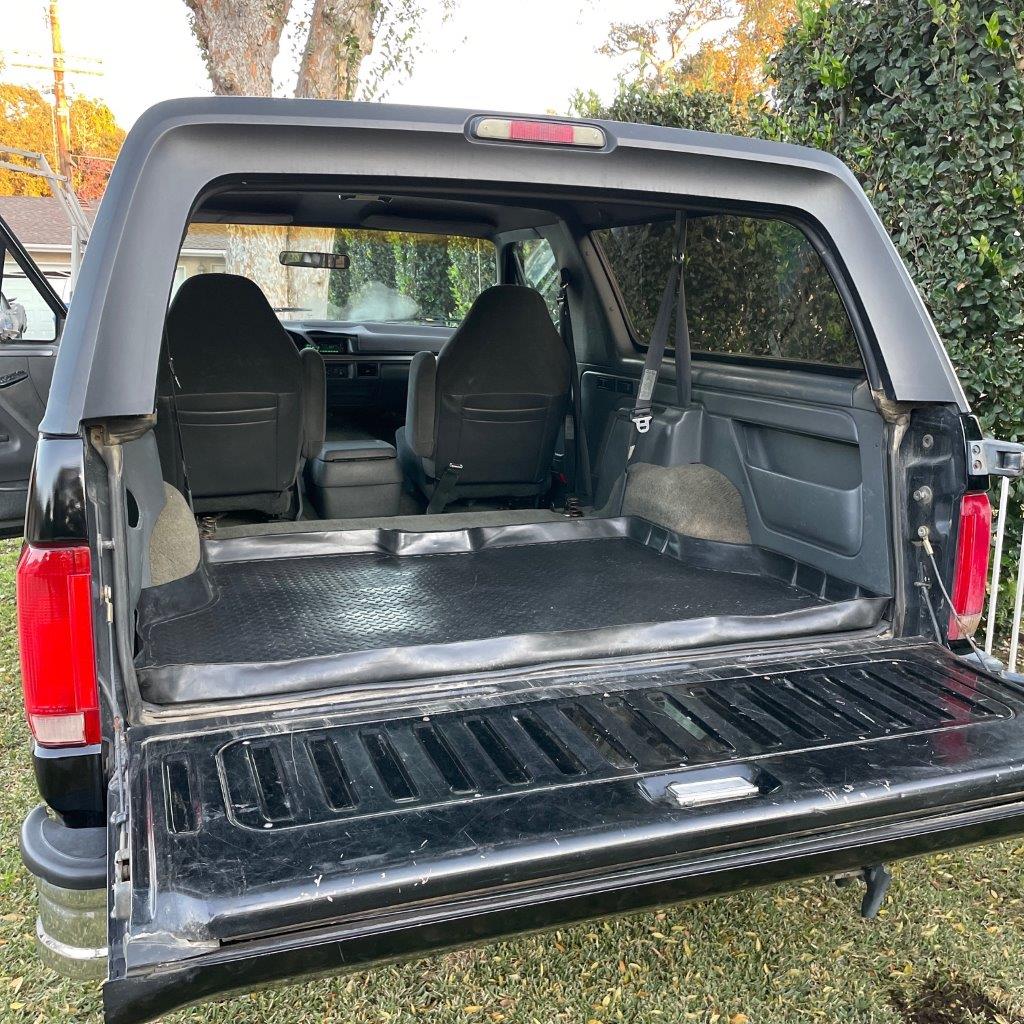 Original Black exterior 93 Bronco. This is the more desirable model over the 1988-1991 model, commonly dubbed the OJ bronco from the famous slow speed police chase of OJ Simpson.  This 93 Bronco has a very nice grey cloth interior, back seat is missing in the photos but is included with the Bronco . With 157k original miles and always serviced at regular intervals, this Bronco runs and drives excellent with it's original 5 liter engine & 4 speed overdrive auto transmission. Other options include power steer, power disk brakes, factory A/.C center console tilt steering, power windows & more. A nice original bodied Bronco, this one has no rust or accident history, and only one repaint since new. Door jambs are all original black & never repainted. A good polish will really make this bronco stand tall. Near new expensive all terrain radial tires on factory wheels help this Bronco drive smoothly on the road.  This is a vehicle to just drive and enjoy as is without any repairs needed.