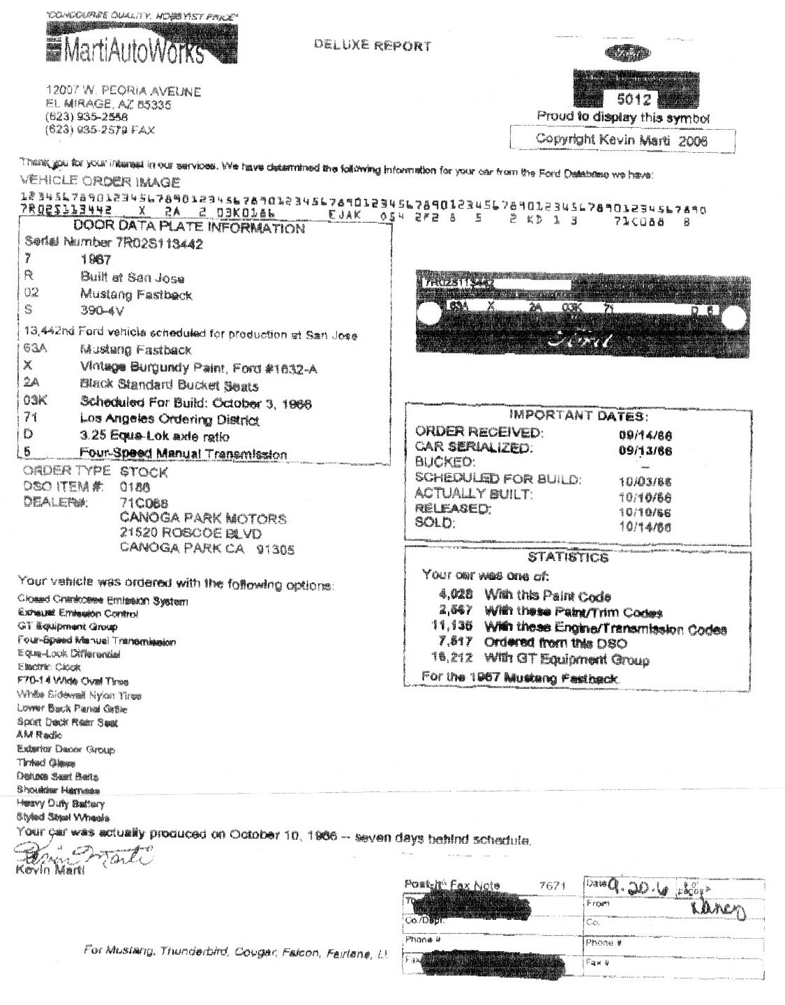 1967 Ford Mustang Fastback GT 390 V8 4V 4 speed manual