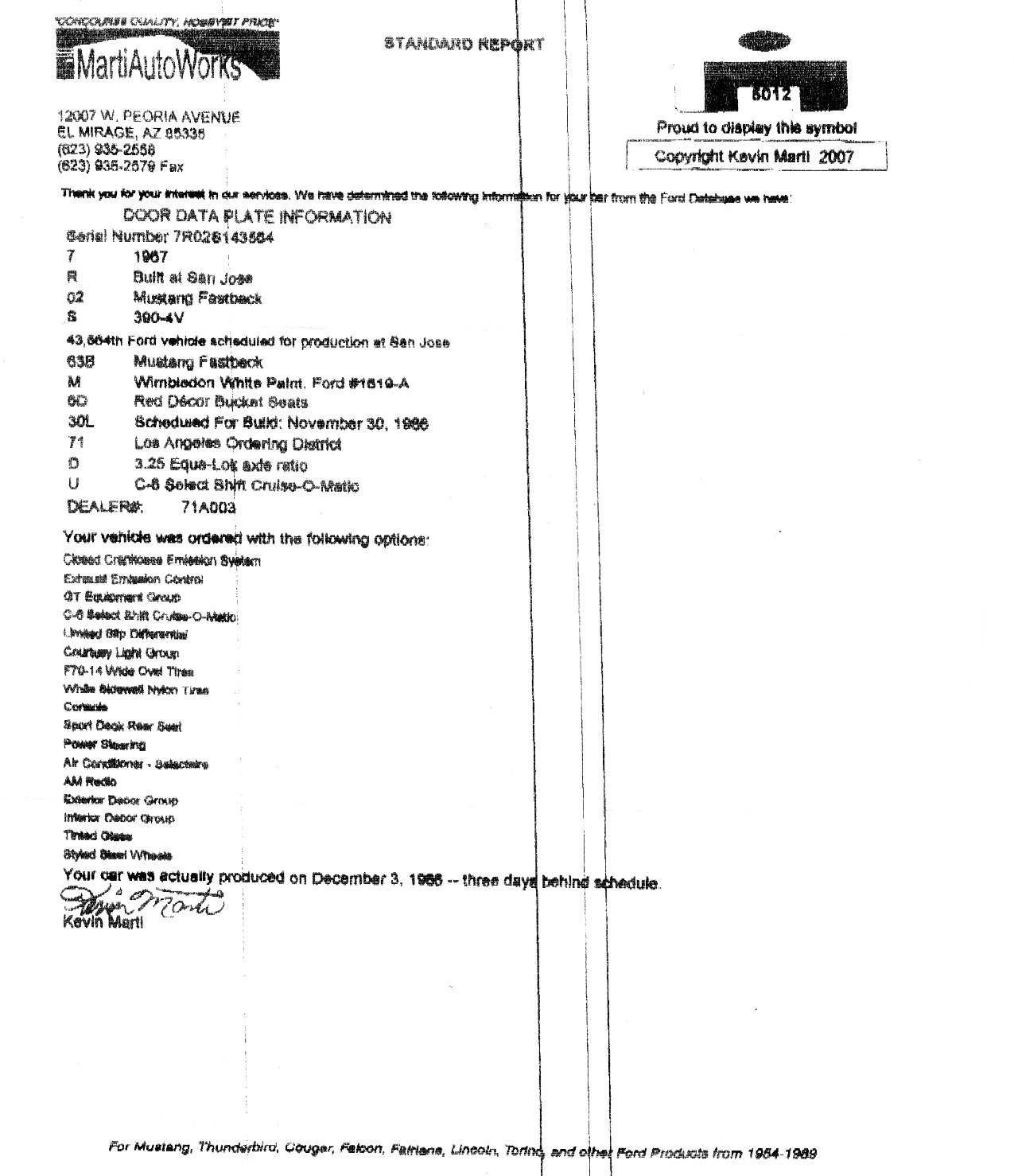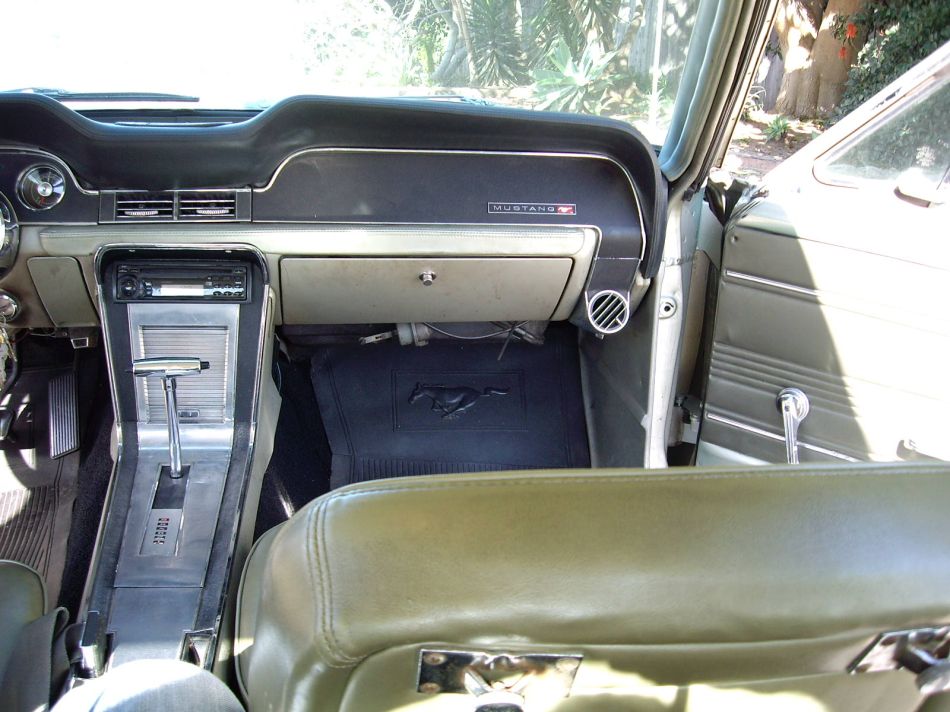 Reasonably priced clean 67 Mustang Coupe. Drive train is reliable and the car drives well. Does need front end work and some general maintenace. Right front floor has rust due to heater core leak (see photo) and there is a small hole under right rear stainless window trim but not extensive (see photo). Original black plate San Jose build coupe.