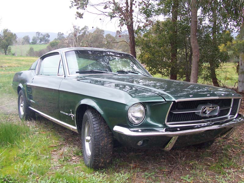 1967 Mustang Fastback, "C" Code 289 V8 Auto, 4 bl Holley carby, Edelbrock heads, extractors. P/Steering, disc brakes. New tyres, original ivy/gold interior with Dark Moss Green two pack paintwork,(Same as Steve Mc Queen's Bullitt car)  Totally rust free Californian car, professionally restored over 18 months- No expense spared on this magnificient vehicle. More photos available on request.