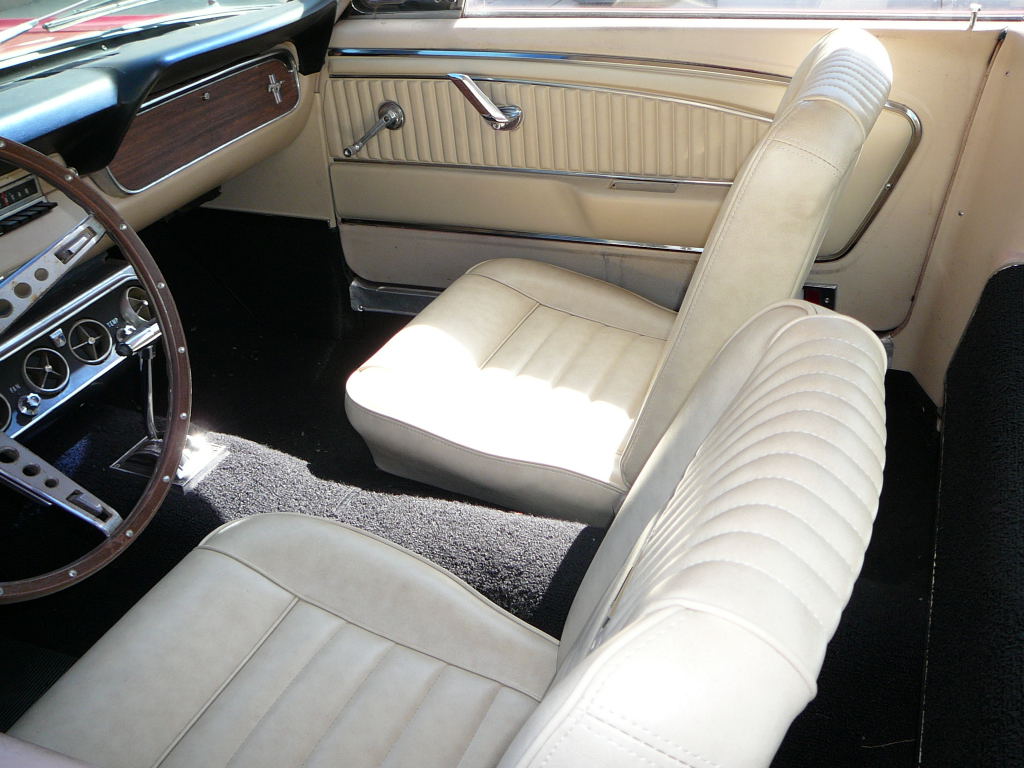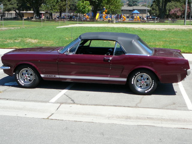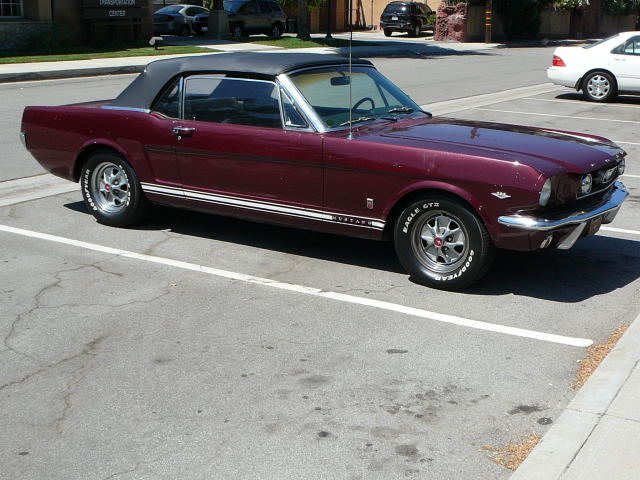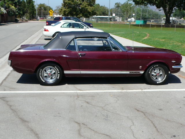 1966 Ford Mustang Convertible A code GT V8 4V Auto VIN 6RO8A182199 113 K original mile Mustang. Extremely original example of a GT, bone stock and all original components under hood, all GT gear intact. 100% rust free Mustang with no accidents EVER. One of the best bodied convertibles that has become available for sale, had one repaint same colour (Vintage Burgandy) Options include all GT gear, power top, power steering, console (not fitted but with car), Styled steel wheels, All original blck interior with mint dash and pad, one seam opened on drivers seat otherwise top condition for 40 year old Mustang . Correct Gt coded steering box, this is a guaranteed real GT Mustang, very solid and good driver with good suspension, brakes and tyres Will need a repaint, door jambs in excellent condition. SOLD Car ID#221 - Return to Index |