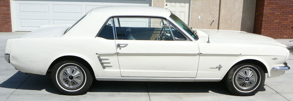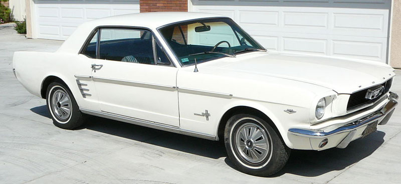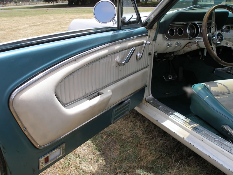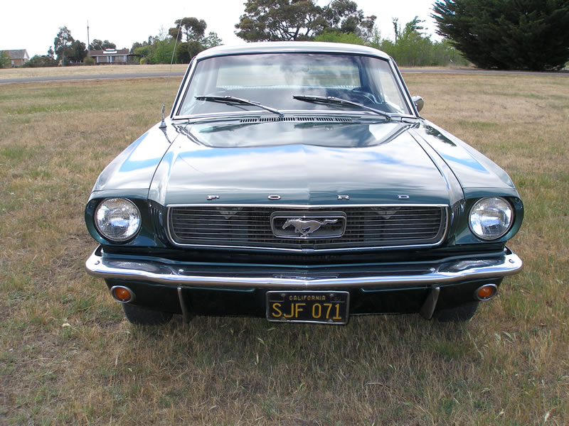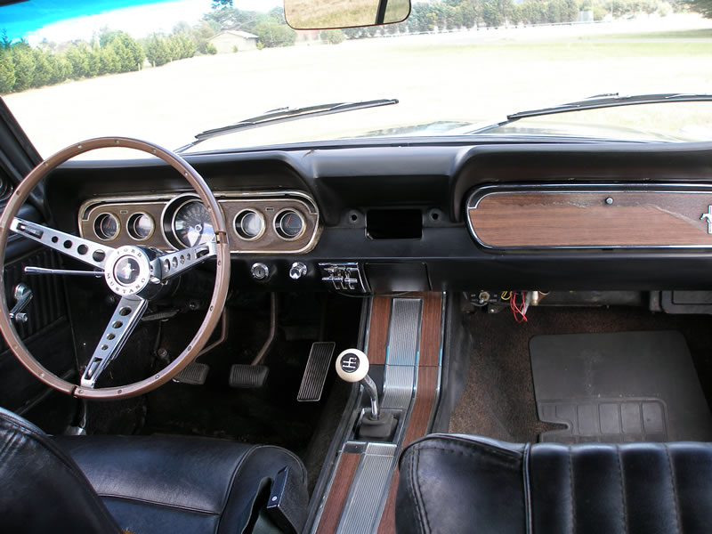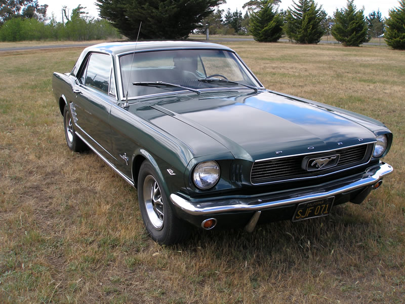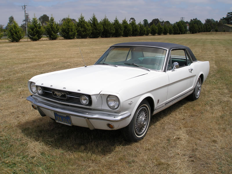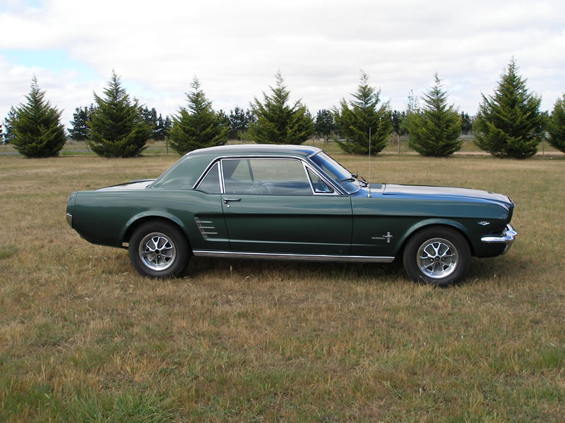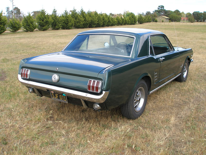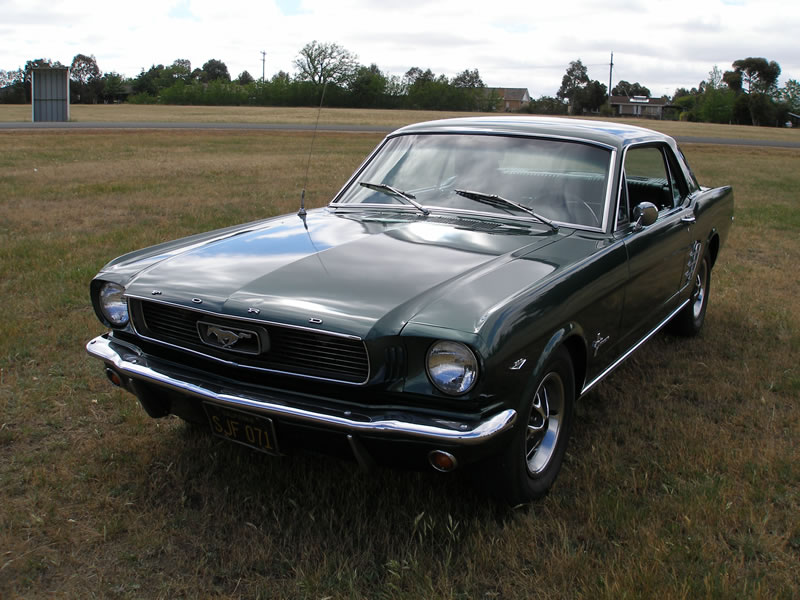 1966 Ford Mustang Coupe 289 V8 4 speed manual VIN 6RO7C187544 Mustang has nice paint and has original black pony interior, other options include centre console, 4 speed manual, styled steel wheels (centre caps in boot) and power steering. Also has dual exhausts with extractors. Floors and rear quarters perfect. Small rust spot door corners. (common problem) SOLD Car ID#228 - Return to Index |