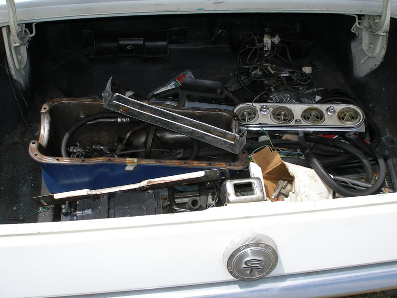 1966 Ford Mustang Coupe A Code GT 289 V8 4V Auto VIN 6RO7A170927 Genuine A code GT, has alloy intake and Doug Thorley coated headers ($500 set), flowmaster exhausts, engine has good power and sounds good. Mustang has all GT options including Kelsey Hayes disc brakes and other options include, pony interior, centre console, power steering and air conditioning (note all air conditioning gear is in the trunk, see photo). Mustang has a good body, has had driver quarter panel replaced. Comes with stock steel wheels with wire hubcaps. Good honest GT at a reasonable price. SOLD Car ID#229 - Return to Index |