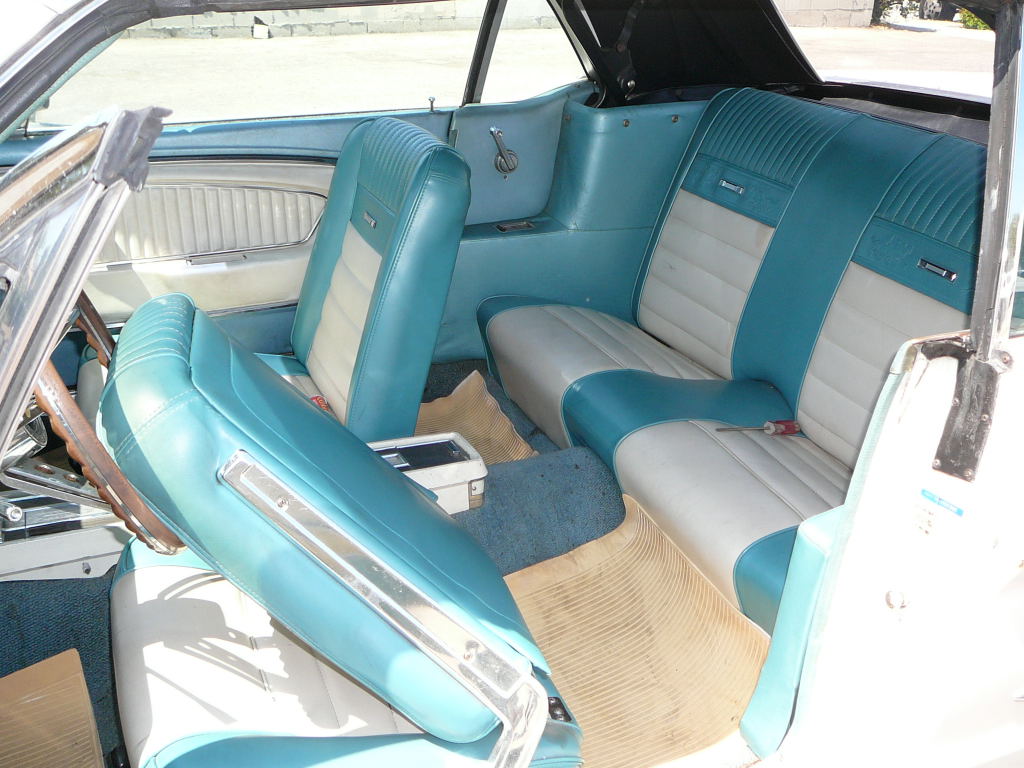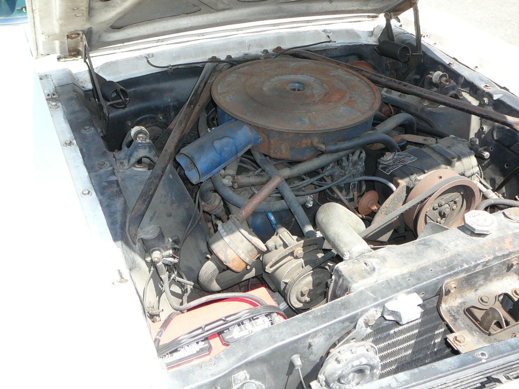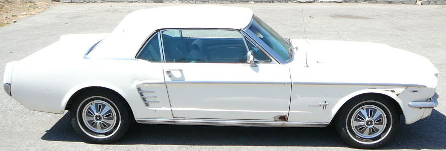 Original white Mustang with two tone pony trim. Power top has just been fitted along with new pads and well liner. A code motor runs strong. Convertible has minor damage to front fender and rust in bottom corner of door. Very original San Jose build convertible. SOLD Car ID#272 - Return to Index |