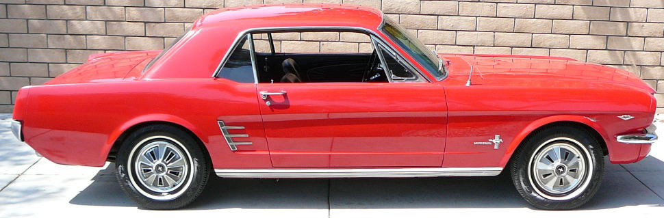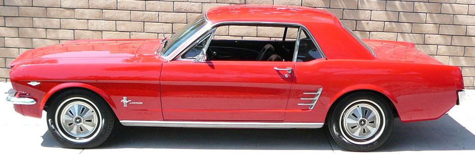 1966 Ford Mustang Coupe 289 V8 Auto VIN 6RO7C285605 Another C Code coupe that has power steering, correct smog under hood, original Candy Apple Red Mustang that has quite reasonable paint - would be an excellent daily driver. Good body with original panels. Very clean example - also has full centre console and original radio. Good driver with dual flowmaster exhaust system - tyres also in good shape. SOLD Car ID#289 - Return to Index |