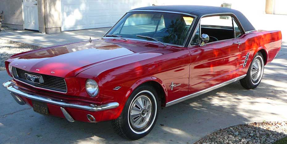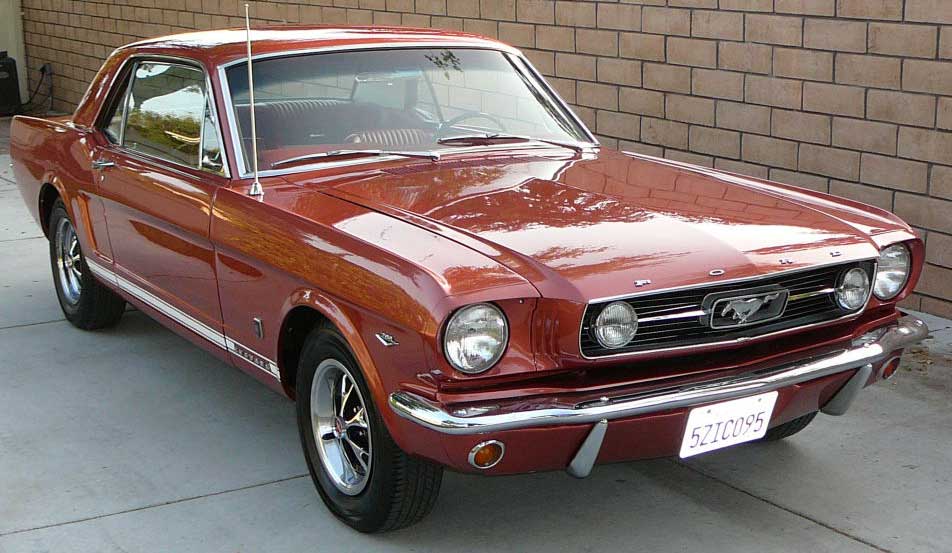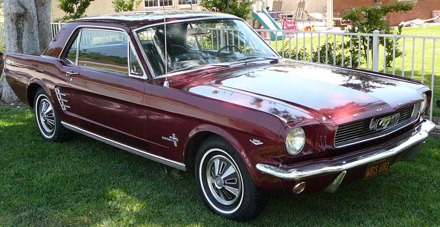 1966 Ford Mustang Coupe 289 V8 Auto VIN 6FO7C333609 Original C Code 289 V8 auto that has power steering and factory air-conditioning. Original Vintage Burgandy Mustang with a nice two stage repaint. Excellent body with original quarter panels and floors. Car looks fine with stock hub caps and wheels, exterior chrome is in good condition. Good driving Mustang. SOLD Car ID#321 - Return to Index |