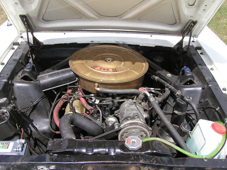 Original 289 C code now has a rebuilt 302 4V V8, shorty headers, alum intake, holly double pump carb.