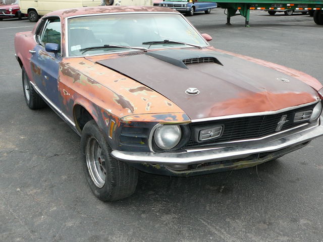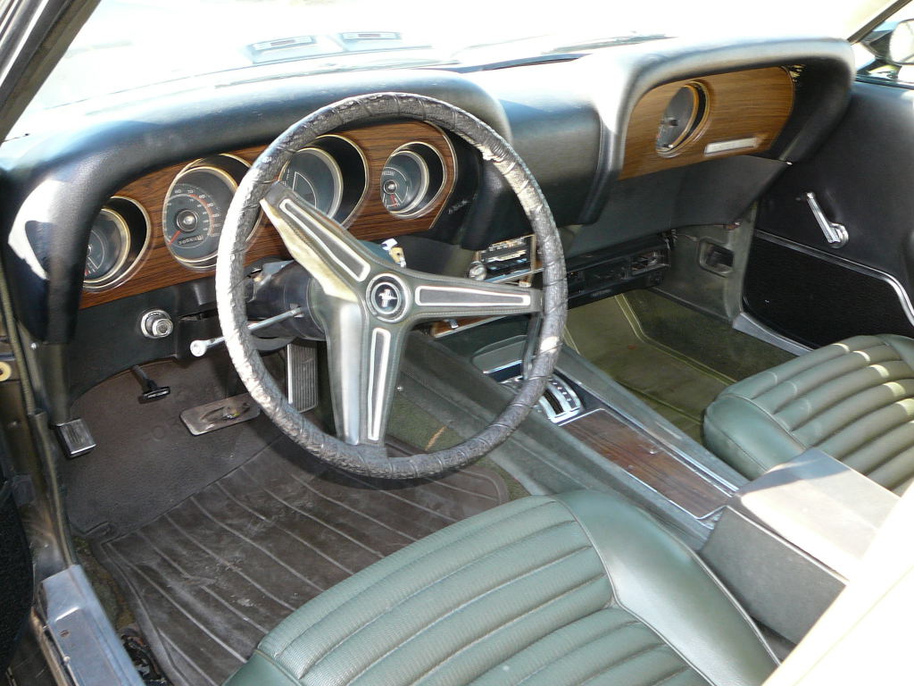 1970 Ford Mustang Fastback Mach 1 351 Windsor 2V Auto VIN OF05H118361 Original H Code Mach 1 with original motor and FMX trans. All Mach 1 gear is intact, has decent correct Black Jade repaint in 2 pack, (no stripes installed). Has new chrome and good Magnum 500 with new BFG 60 series radials. Reasonable interior with new door trims in black (new buyer, may go with new black interior rather than green). Mach 1 has good power and drives well. Very good original clean body. A few flaws in paint but otherwise very presentable. Does not have power steering or Power disc brakes (conversion kit available for P/S for $350 US and disc brake $550 US - I can source these if required by buyer.