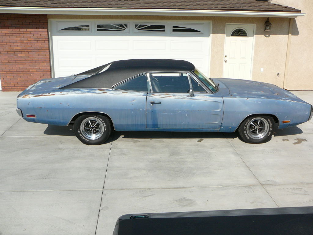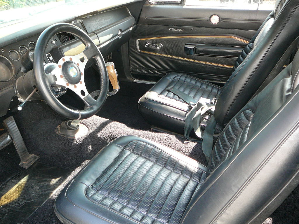 Charger has just had fitted new correct interior, original black, (seats, carpet, headliner and door panels. Right side is in the boot not fitted). The dash pad is still original. This Charger comes with one of the nicest bodies I have been able to source, the car is nearly rust free. Original B5 Metallic has been painted once, now faded. New vinyl top over a zero rust roof (this is guaranteed). Zero rust under this Charger. The 440 V8 has lots of power and car drives well. Also comes with new Magnum 500 and new high torque mini starter.