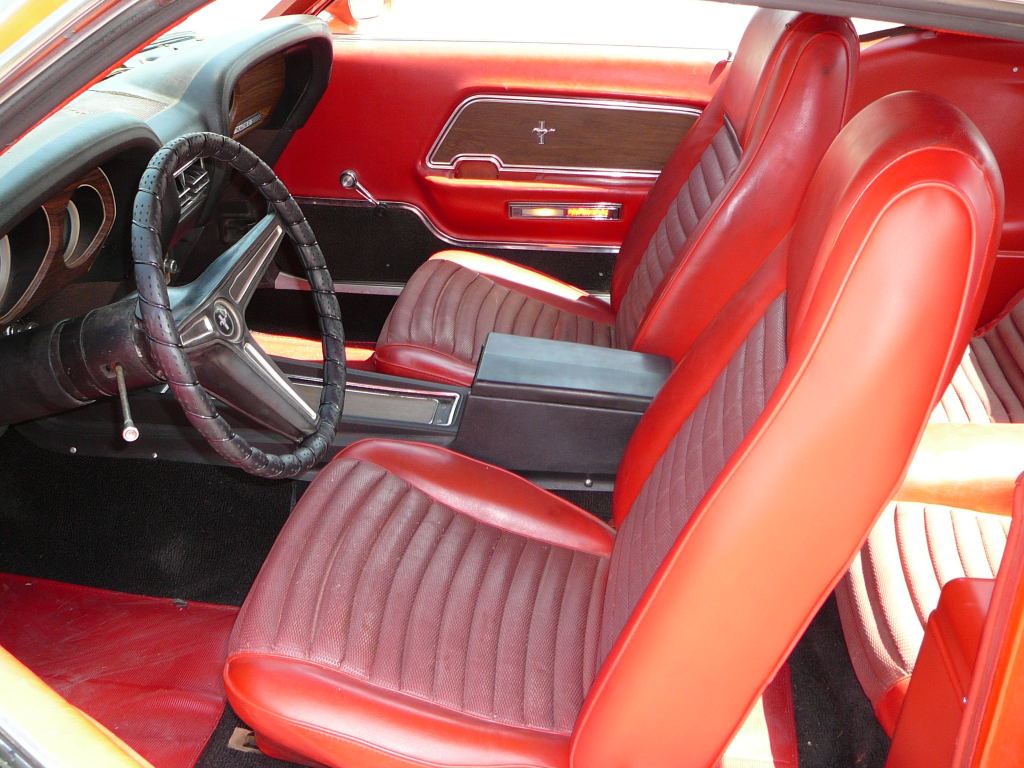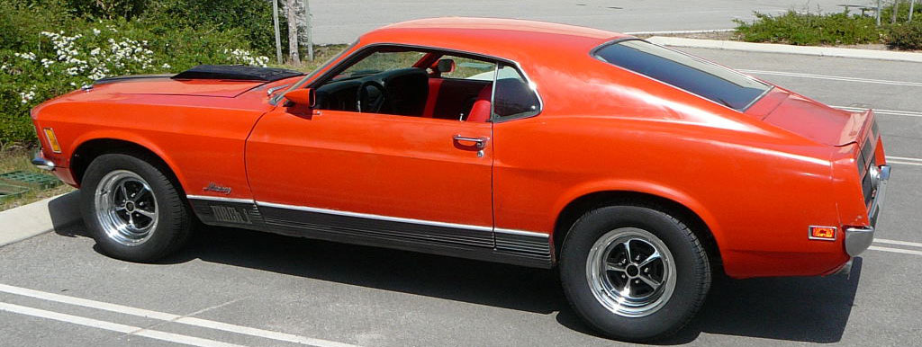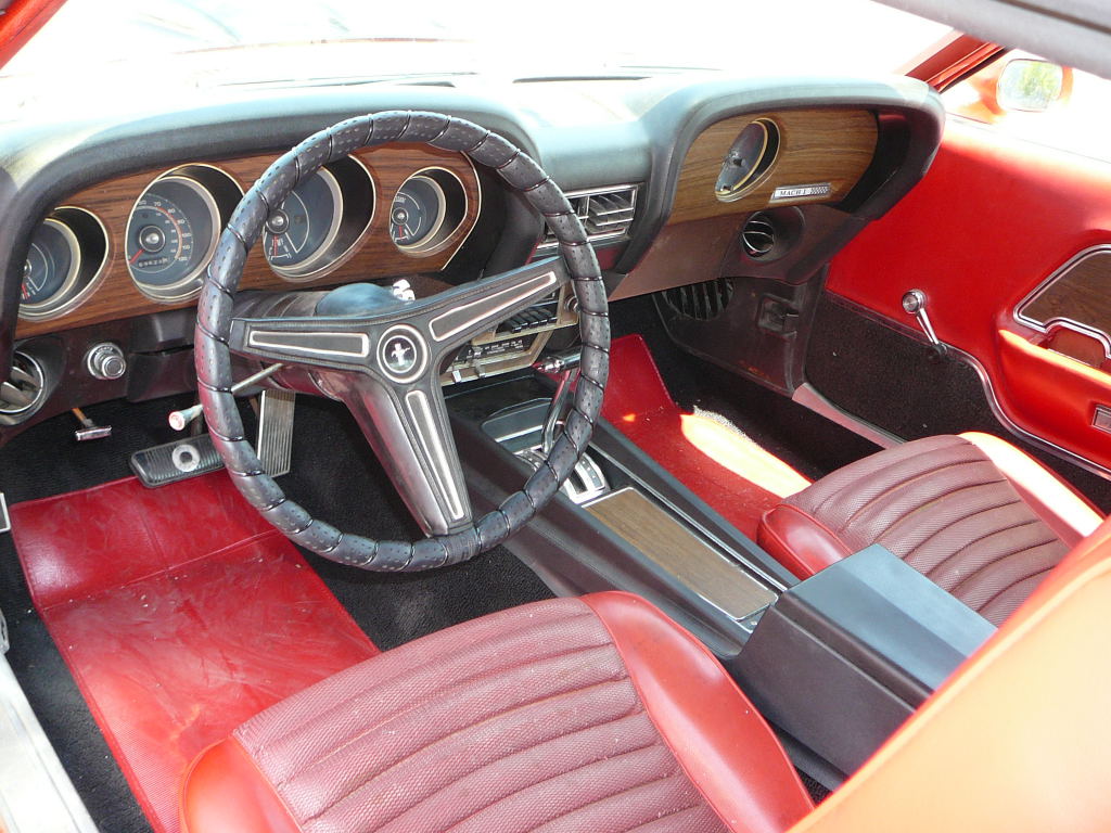 1970 Ford Mustang Fastback Mach 1 428 V8 4V Auto VIN OF05Q111918 Original Q Code 428 Cobra Jet with mostly correct drive train, may have a replacement 428 block, otherwise very correct with CJ intake, CJ heads, CJ exhaust manifolds, air cleaner brackets and pulleys. Has original C6 auto and correct CJ nodular diff with Detroit Locker Posi and 31 spline axles. For full option list check out Marti Report. Cobra Jet drives very well, with fully rebuilt engine, transmission, suspension, and fuel system and brakes. Rare and desirable Calypso Coral paint, never painted in door jambs or boot. Minor rust repairs at bottoms of rear quarters. Has had quarter panel repair on right side. Nice floors. Interior has some new items in original colour (Vermillion). New white door trims come with car - allowing buyer to go black interior if original colour too bright. New Magnum 500 (15 Inch) and BFG series 60 tyres just fitted. Rare Cobra Jet at a fraction of aussie Muscle (compare price to 6 cyl Chargers). SOLD Car ID#256 - Return to Index |