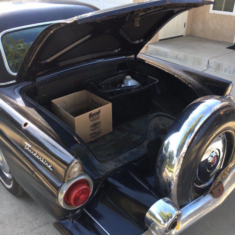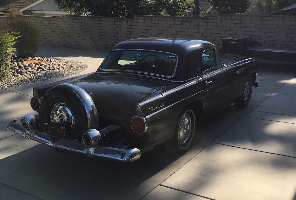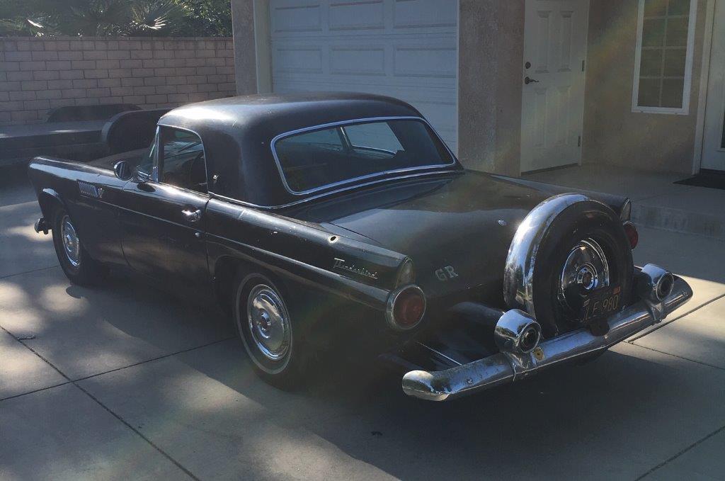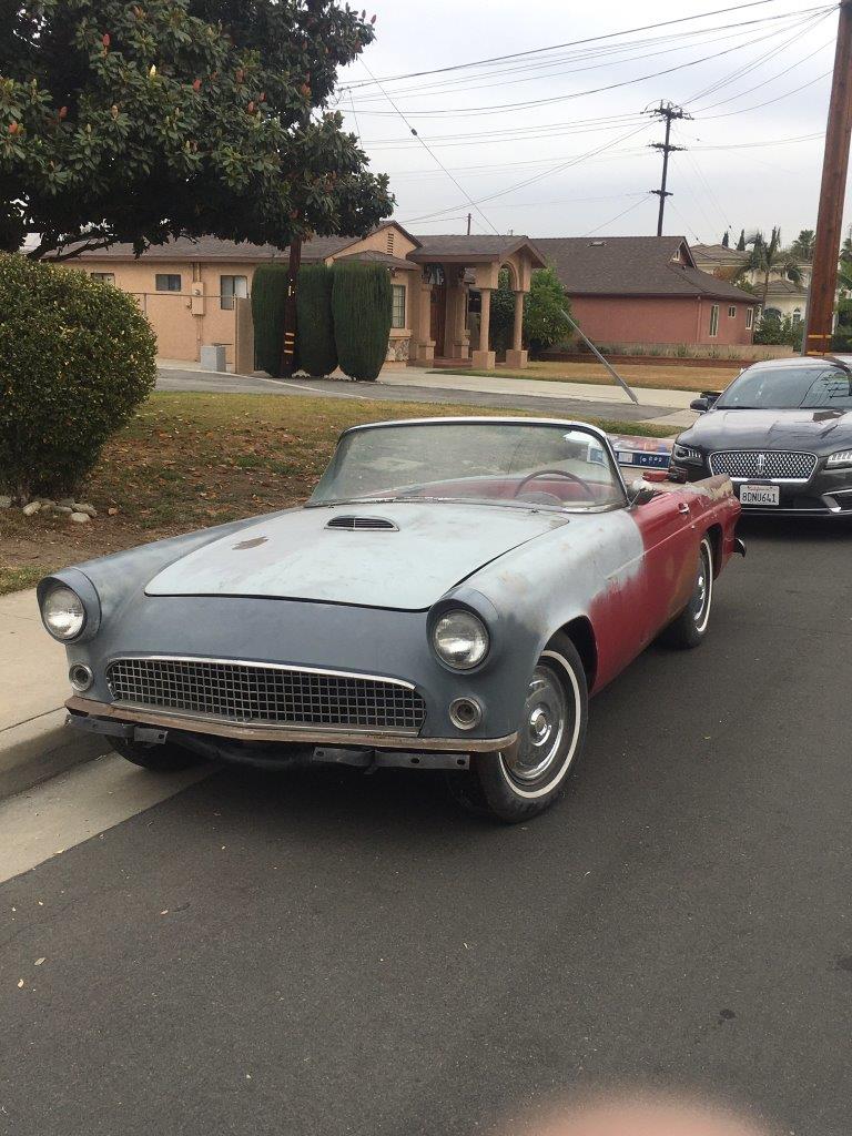 Here is another example of an early T Bird for restoration - this type of T Bird is getting extremely hard to source- this one is optioned with power assist brakes, power seat and hardtop.Note there is no softop with this T Bird.Original exterior colour is Torch Red with 2 tone red/white interior.Very little paint left on T Bird so removal of balance will be easy.Car has all original body panels and floors with only minor rust and filler on rear quarters-no replacement panels needed.The prior owner claimed engine has been rebuilt but I have no papers to confirm this. Engine did fire up with petrol in carby .T Bird has correct air cleaner and carby .Valve covers appear to be 1956.This is a great resto project for someone post virus . Comes with some parts and new front bumper bar.