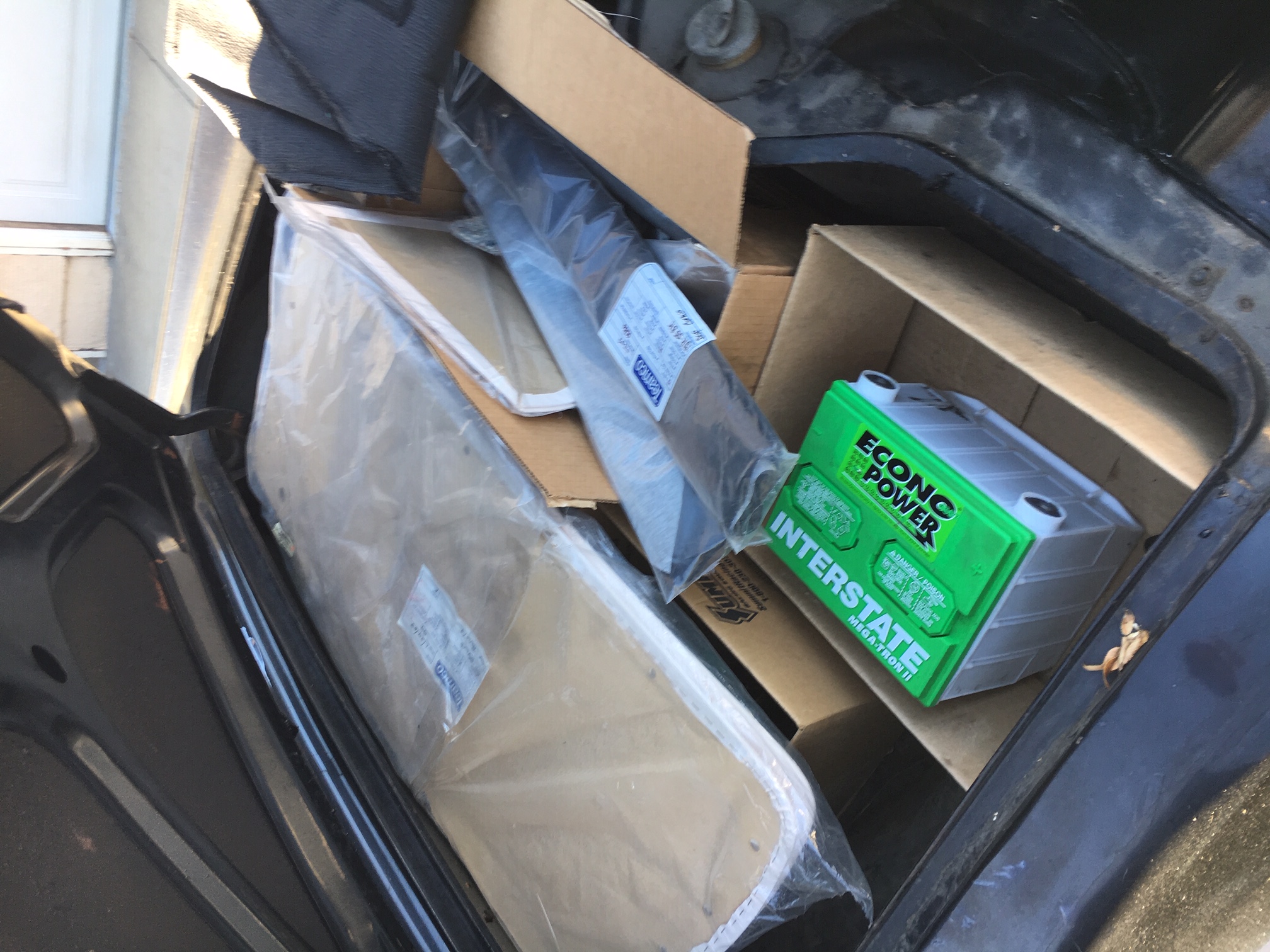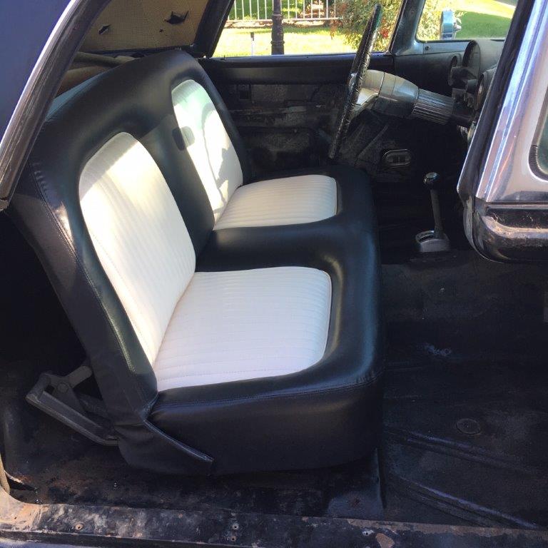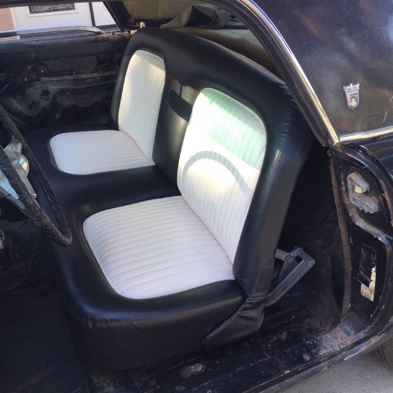 Front seat has just been reupholstered prior to shipping .  T Bird comes