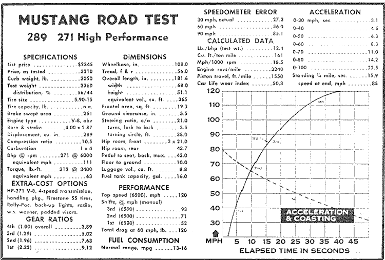 Tests courtesy of "Mustang A Complete Guide a Car Life special Edition", printed 1965